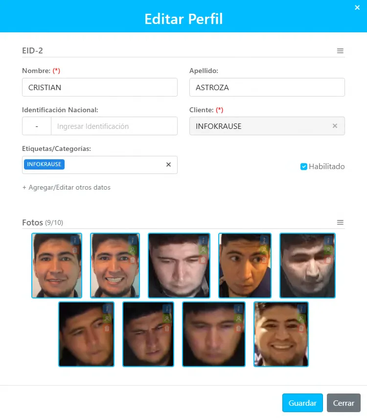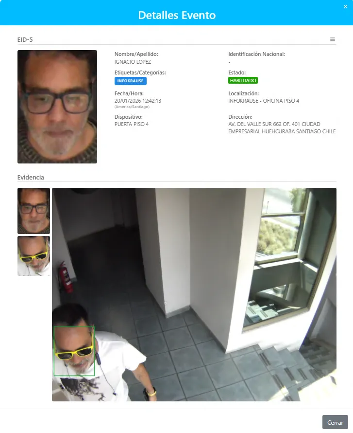 Registros historicos almacenados con los reconocimientos de IKFace en VSS