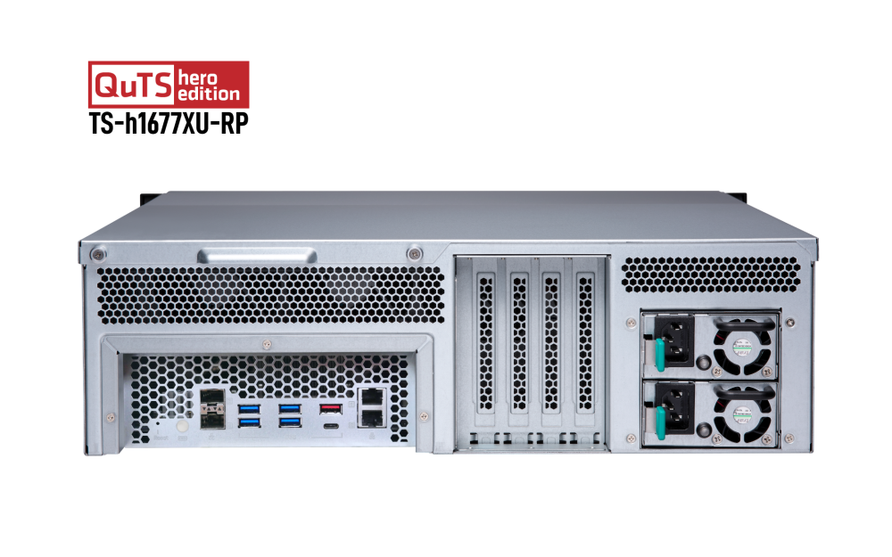 El NAS TS-h1677XU-RP con QuTS hero está equipado con un procesador AMD Ryzen™ 7 que ofrece un increíble rendimiento del sistema y de las máquinas virtuales con hasta 8 núcleos/16 hilos y una potencia de hasta 4,4 GHz. Con el sistema operativo QuTS hero basado en ZFS, TS-h1677XU-RP prioriza la integridad de los datos y es compatible con la deduplicación y compresión de datos en línea a nivel de bloque, instantáneas casi ilimitadas, SnapSync en tiempo real, protocolo SNMP y Servicios de dominio de Azure AD. Al usarse como un servidor de archivos de misión crítica, un servidor de virtualización, un editor de vídeo colaborativo o una eficaz solución de copia de seguridad y recuperación de archivos, el TS-h1677XU-RP ayuda a su empresa a conseguir el increíble rendimiento del acuerdo de nivel de servicio.
