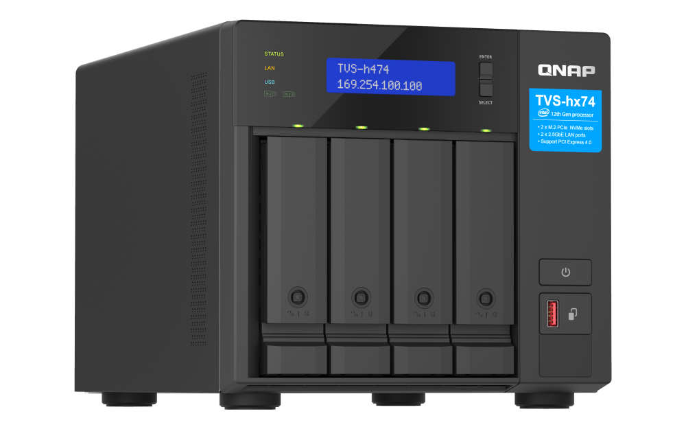 Con un procesador Intel® Pentium® Gold de doble núcleo compatible con el sistema operativo QuTS hero basado en ZFS, el TVS-h474 SMB NAS garantiza la integridad de los datos y admite la deduplicación y compresión de datos en línea a nivel de bloque, instantáneas casi ilimitadas, SnapSync en tiempo real, y optimización de SSD. Ya se trate de servidores de archivos de misión crítica, servidores de virtualización, edición de vídeo colaborativa o eficaces aplicaciones de copia de seguridad y recuperación de datos, el TVS-h474 ofrece una solución NAS ideal. El TVS-h474 de alto rendimiento proporciona capacidad de ampliación PCIe Gen 4 (hasta el doble de la velocidad de transmisión de Gen 3), almacenamiento en caché para SSD M.2 NVMe y conectividad de 2,5 GbE para entornos de red de virtualización de alta velocidad.